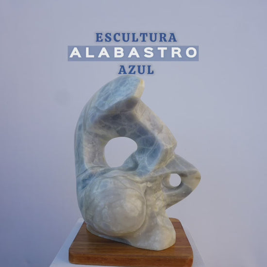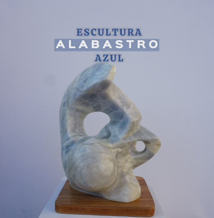 Blue alabaster sculpture and wooden base