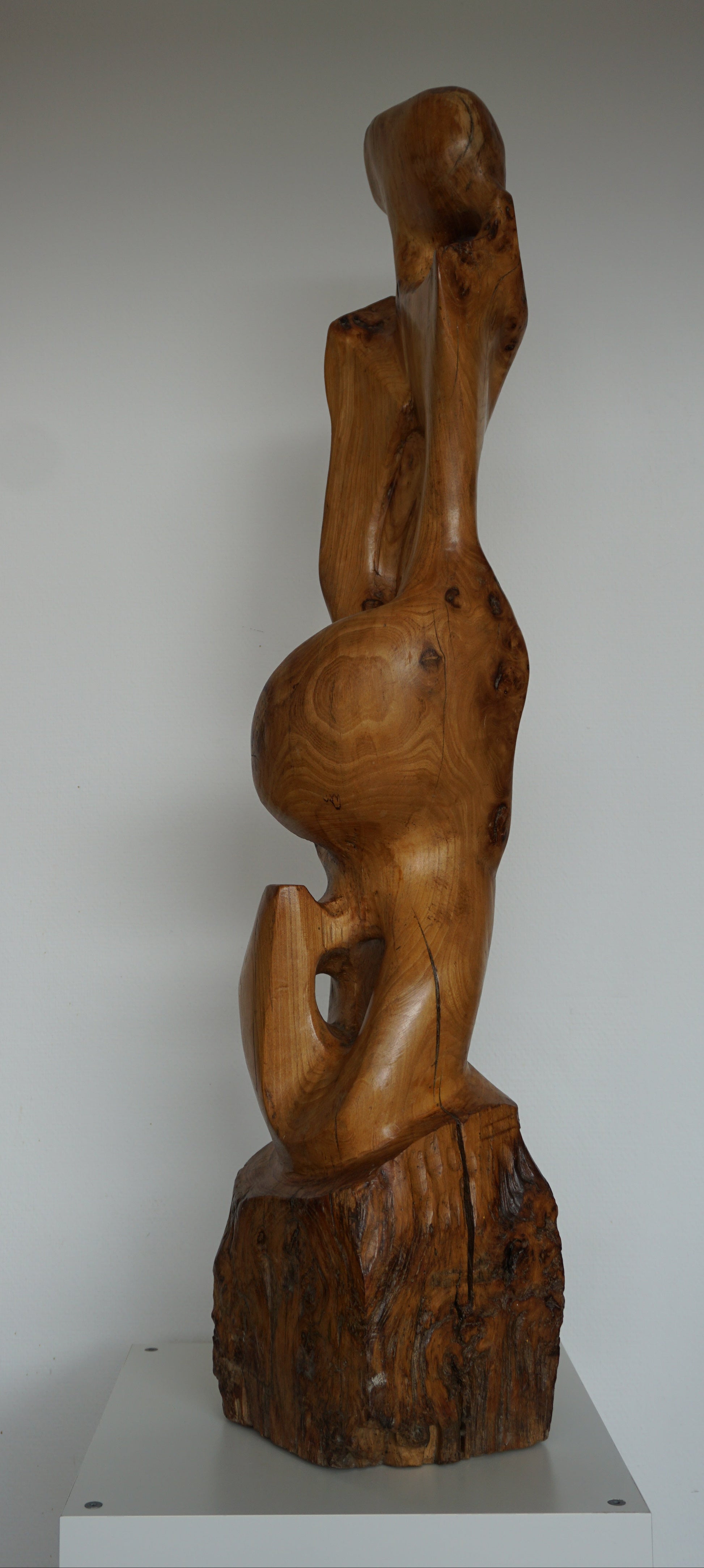La Danza esta tallada en madera de roble antigua, a partir de una viga de una casa de más de 100 años del norte de España.